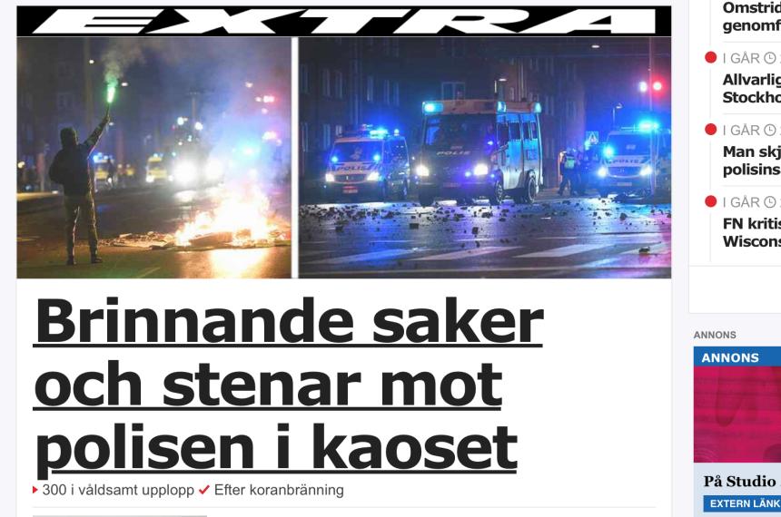 Våldsamma upplopp efter koranbränning i Malmö. Bild: Aftonbladet.